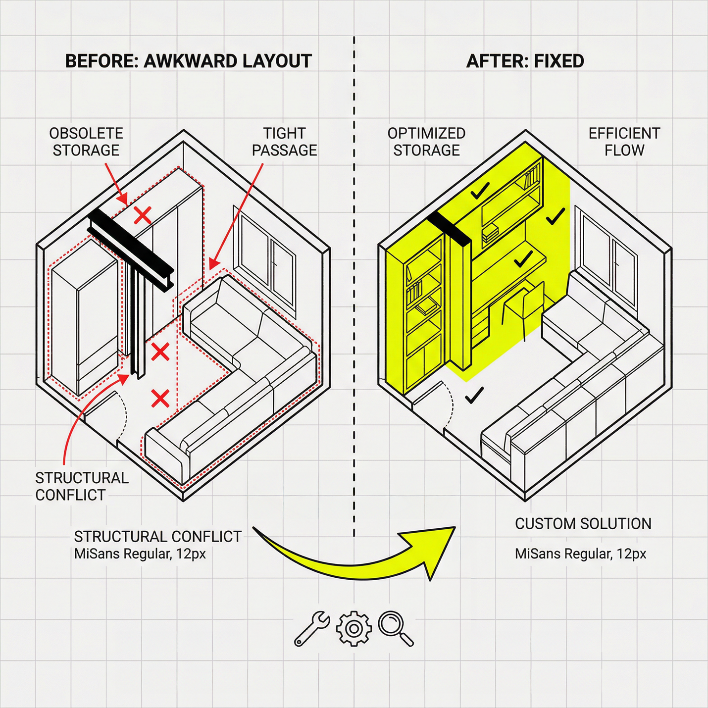 A focused layout review and optimization session to unlock space without full renovation commitment.